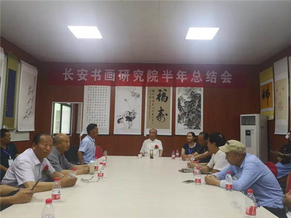 当日下午,长安书画研究院半年工作会议在丰京分院驻地会议室召开。会议由秘书长陈炜对2019年上半年以来的工作进行总结,随后康智峰院长又强调了半年的工作成绩并指出下半年以建国七十周年书画展为主题的努力方向,广泛征求了参会同志的建设性意见和建议,鼓励大家努力提升艺术创作水平,争取有精彩表现。