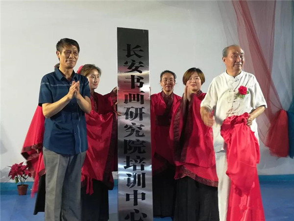 新时代法制传媒网讯(张娟)2019年6月16日上午,长安书画研究院丰京分院揭牌仪式庆典活动暨长安书画研究院半年工作会议在西咸新区沣西新城(马王街办大泥河村环宇幼儿园)顺利举行。长安书画研究院部分成员、各分院负责人,以及陕西历史博物馆、西安碑林博物馆、陕西墨香国学书画院、西安国龙书画院、陕西书画艺术研究院的书画家到场祝贺并参与书画交流活动。康智峰院长与著名书画家张山为丰京分院揭牌,同时,长安书画研究院书画艺术培训中心也揭牌成立。